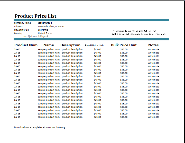 Ms Excel Price List Template ... | 720x556 px